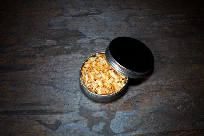 Les copeaux de bois gras peuvent être facilement allumés avec une flamme d’un briquet ou avec un peu de pratique, avec une pierre à feu.