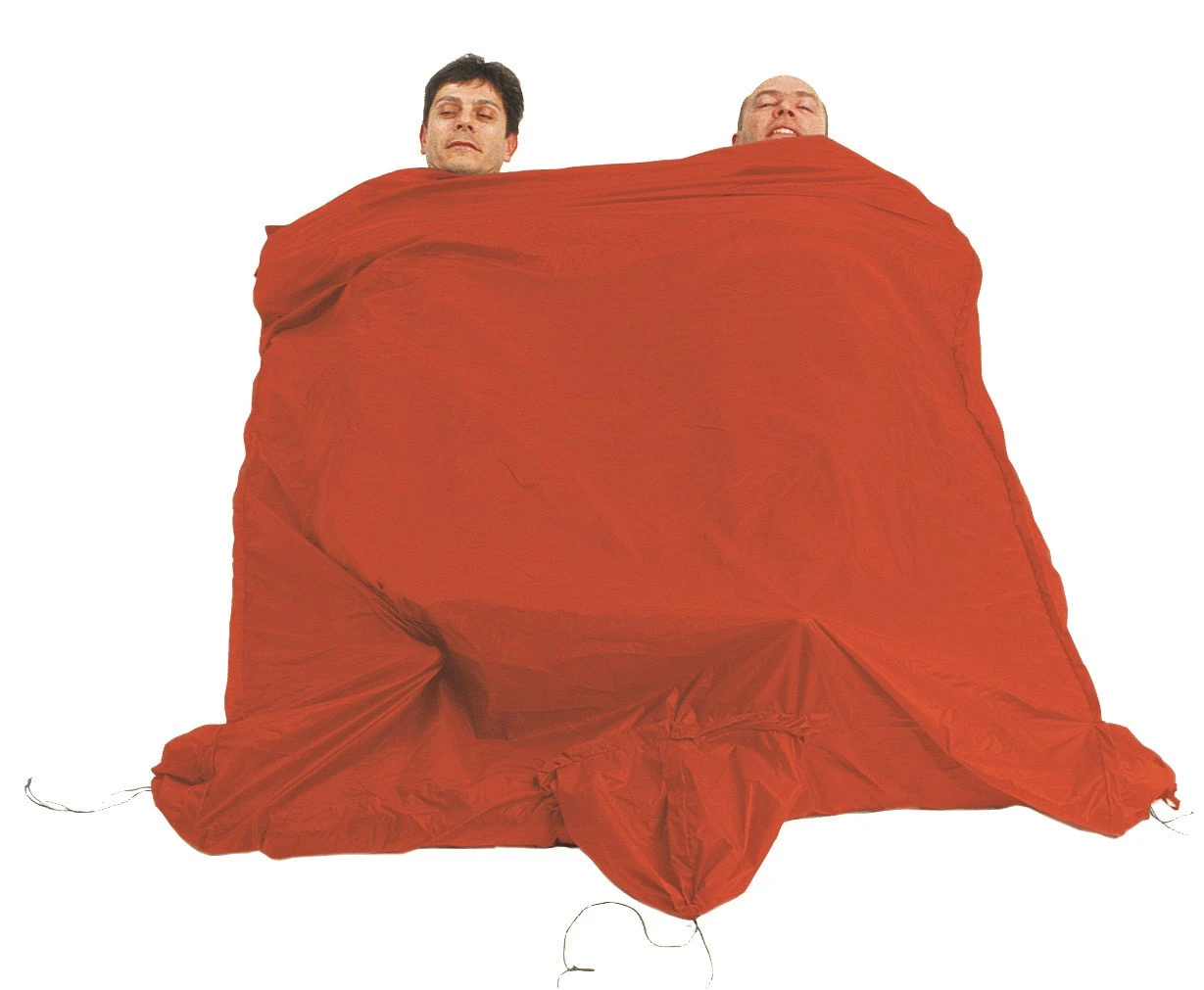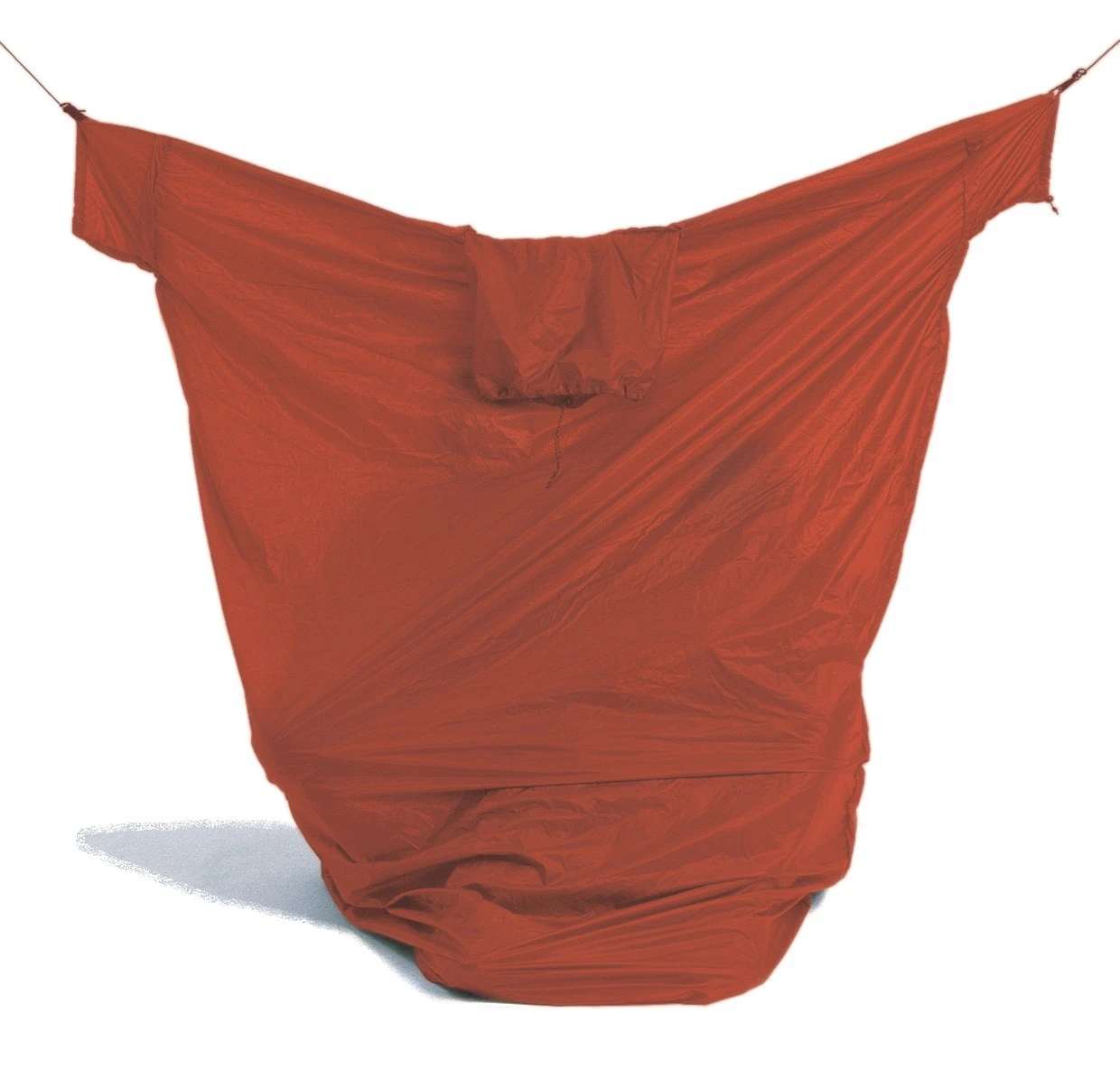 A deux le Bivibag s’utilise comme sac de bivouac étanche. Les trois ouvertures au fond évitent la formation de condensation. L’ouverture du haut se maintient ouverte en enfilant par exemple un bâton dans la sangle. Seul, il se prête bien à un usage poncho.