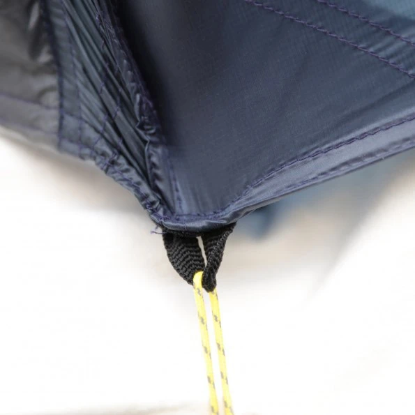 Le montage de la tente intérieure se fait en simultané avec celui du double-toit. Possibilité de déconnecter la tente intérieure et de ne la monter qu’après le double-toit en cas de pluie lors du montage. L’utilisation du double-toit seul permet d’obtenir un abri ultraléger de type tarp.