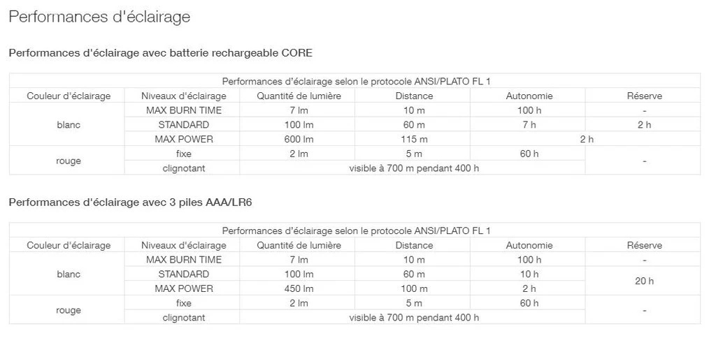 - Fonctionne avec 3 piles AAA/LR03 ou batterie rechargeable Petzl Core (incluse)
