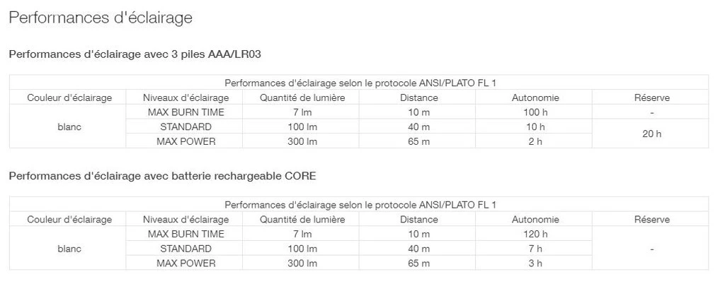 - Fonctionne avec 3 piles AAA/LR03 ou batterie rechargeable Petzl Core (vendue séparément)
