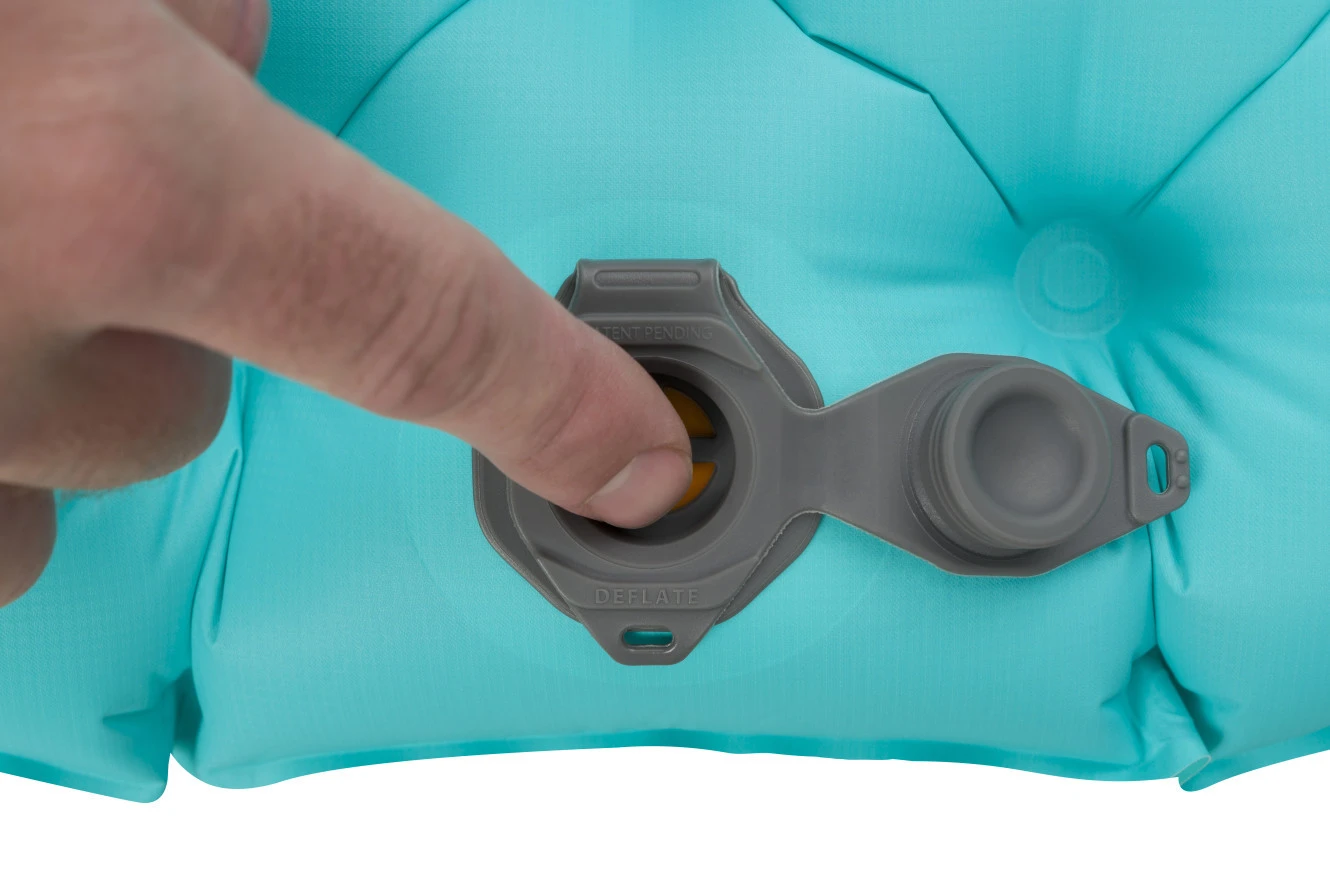 Au niveau de la tête, l’attache PillowLock permet de fixer un oreiller Aeros Sea to Summit à votre matelas pour le tenir en place toute la nuit. (Oreiller vendu séparément).
