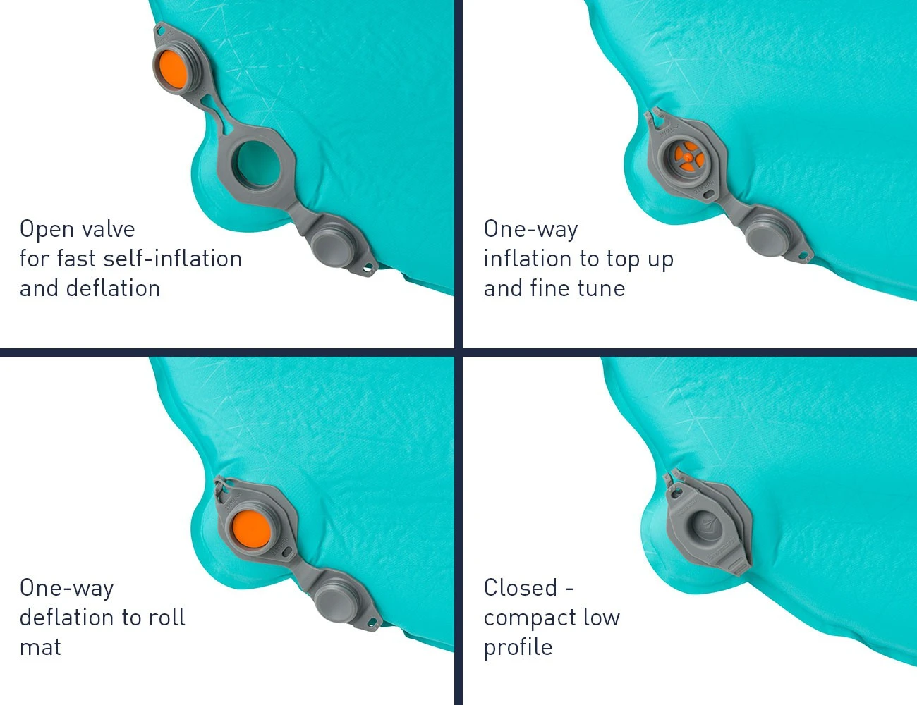 Il est pourvu d’une valve plate multifonctionnelle unique avec un clapet anti-retour. Cette valve à haut-débit permet de gonfler et dégonfler rapidement et effacement le matelas. Elle peut aussi servir à gérer la pression du matelas si besoin.