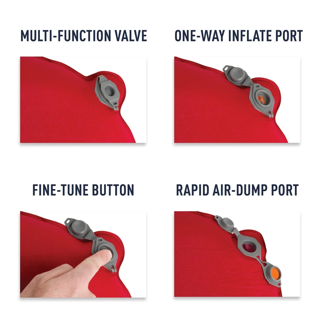 Le Comfort Plus SI est pourvu d’une valve unique avec clapet anti-retour (gonflage-dégonflage). Ceci permet un gonflage rapide ainsi qu’un dégonflage efficace. Le clapet anti-retour évite que le matelas ne se regonfle pendant le pliage et peut être utilisé pour gérer la pression.
