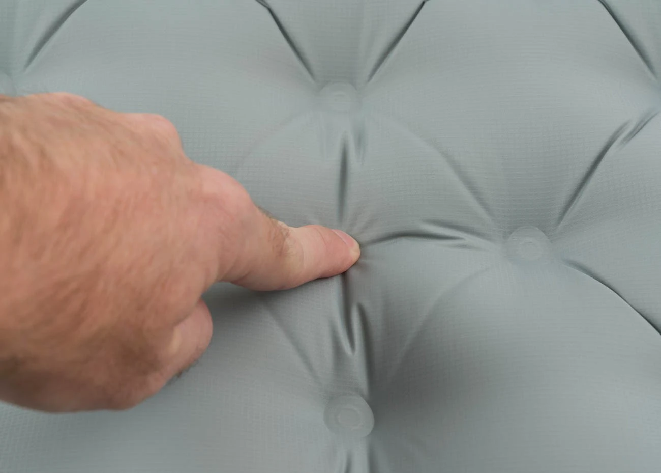 L’Ether Light est un matelas gonflable utilisant la technologie « Air Sprung Cells » qui sont des cellules d’air maillées entre-elle avec du TPU. Cette conception en cloisons permet de créer des poches d’air volumineuses en utilisant moins de tissu par rapport à un matelas traditionnel. Au final, l’Either Light Insulated en taille 183 cm ne pèse que 425 grammes.