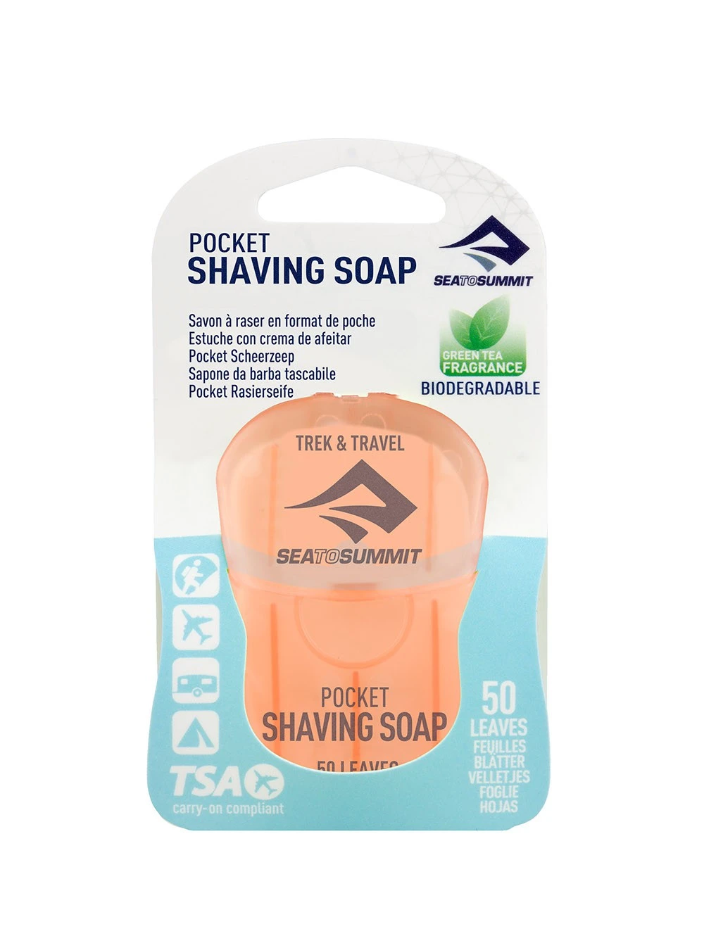 Savon à raser en feuilles, biodégradable. Livré dans un étui de 50 feuilles en format de poche.