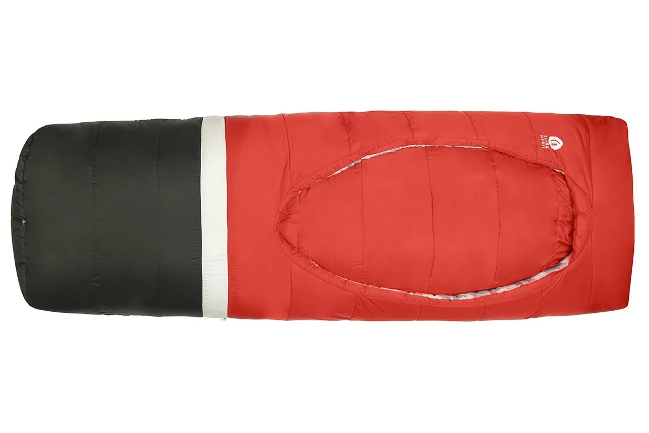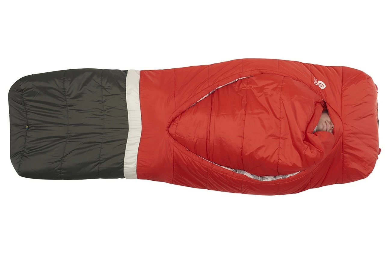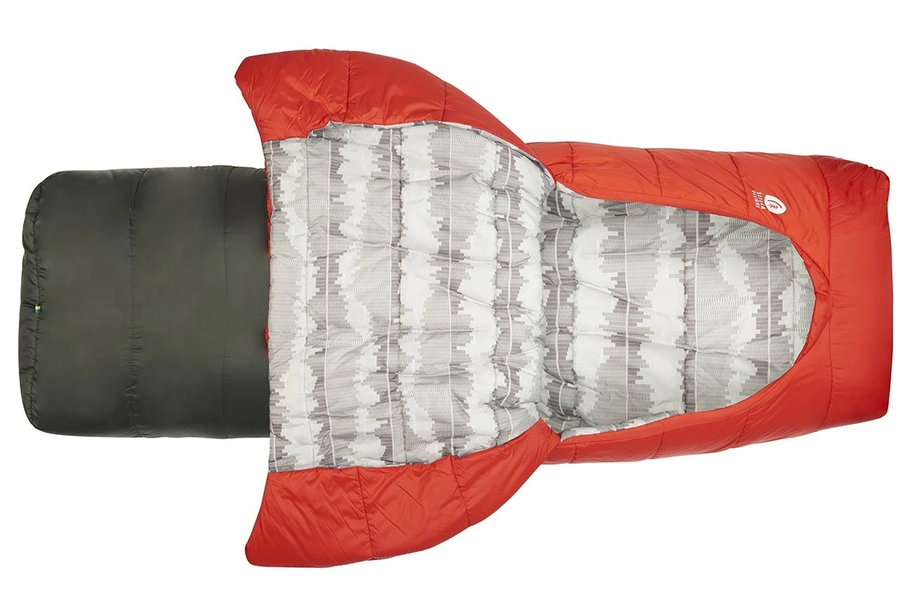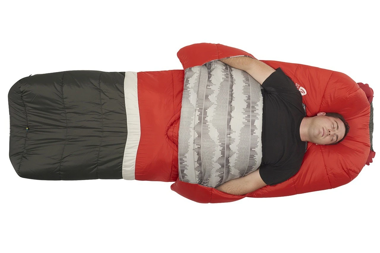 Le Frontcountry Bed 20 de Sierra Designs est un sac de couchage en fibres synthétiques et de forme rectangulaire. Prévu pour des nuits jusqu’à 0°C, il est très confortable et modulable. Doté d’une conception unique, il ne dispose pas de fermeture éclair, mais d’une couette. Elle vient se glisser derrière les épaules, offrant une grande liberté de mouvements, ainsi que la possibilité de se couvrir ou de se découvrir rapidement durant la nuit. Au niveau des pieds, une ouverture permet une ventilation par le bas lorsqu’il fait trop chaud.