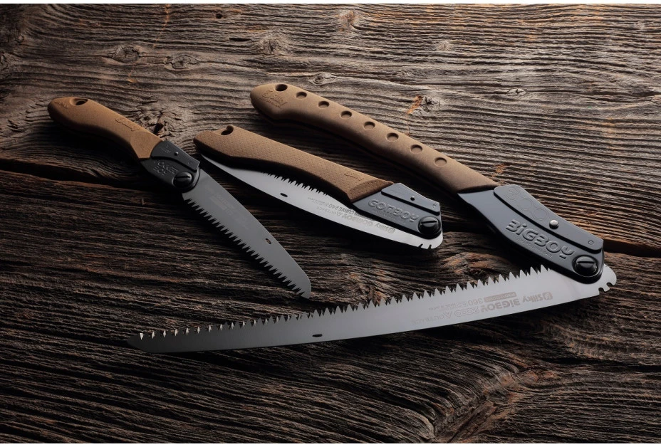La Bigboy 2000 Outback Edition de Silky est une grande scie pliante très efficace pour l’élagage. Elle est dotée d’une longue lame légèrement incurvée permettant de scier loin. La dentition permet une coupe tirante demandant moins d’effort à l’utilisateur.
