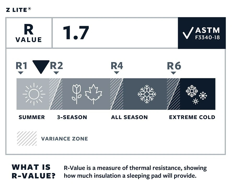 Le Z Lite Sol est un matelas en mousse à alvéoles fermées. Ce tapis de sol pliant en mousse a une R-Value de 1.7 avec la nouvelle norme ASTM F3340-18. La surface en structure d’œuf offre une bon confort. Ultra-léger, le Z Lite est un matelas mousse qui ne pèse que 410 grammes !