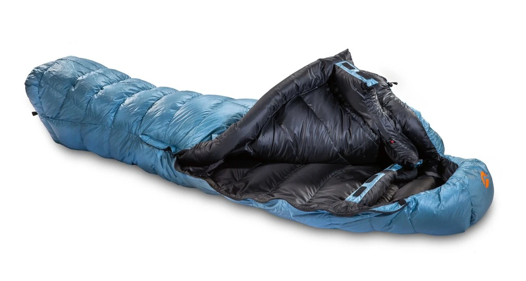 Ce sac de couchage est garni en duvet d’oie grise fermière de 800 cuin + avec une répartition de garnissage 95/5. Il est pourvu de 32 compartiments pré-coupés de forme tubulaires qui représentent 80 pièces de tissu assemblées dans une construction 3D.
